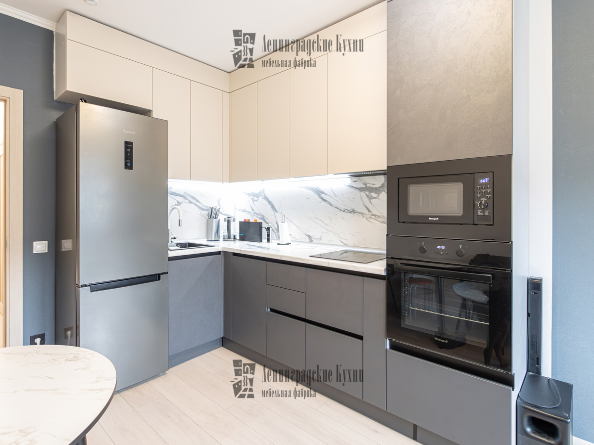Посмотрите, как лаконично и изящно смотрятся фасады с push-to-open на примере проекта кухни «Швейцария»