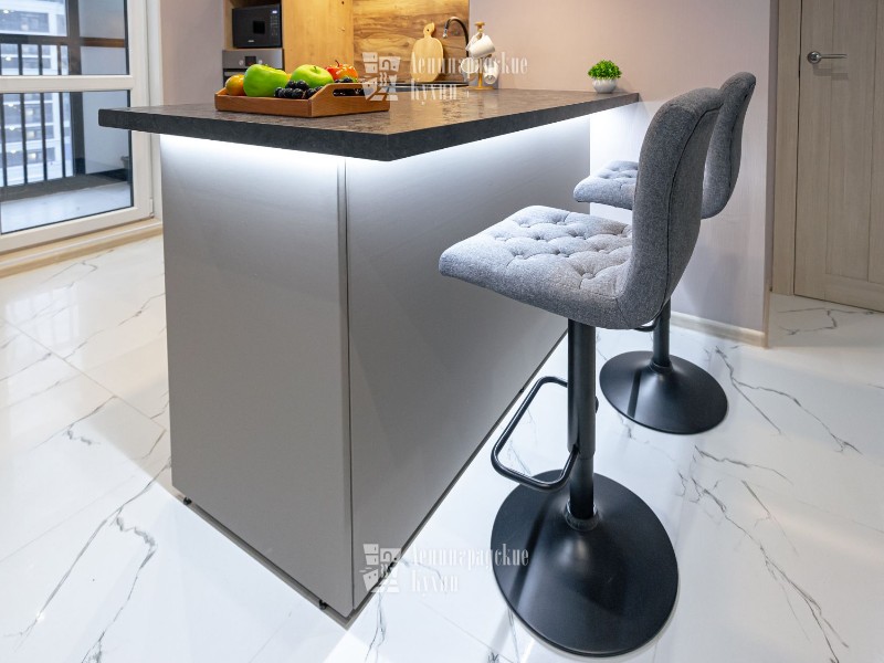 По нашим наблюдениям, 65% клиентов мечтают о кухонном острове. И не только из-за красоты такого решения. Дополнительный модуль увеличивает функциональность интерьера на 40%.