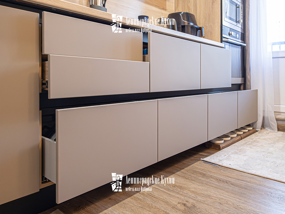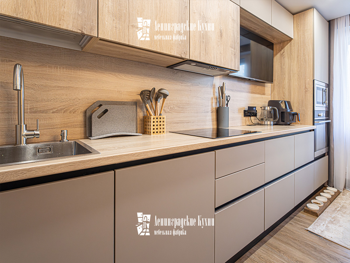 «Ауриэль» — это кухня в классическом современном стиле. Сочетание пастельных фасадов с декором светлого дерева создаёт элегантный и уютный образ. Отличная эргономика обеспечивает максимум комфорта для хозяев. Такой гарнитур подойдёт тем, кто ищет сбалансированный и не устаревающий дизайн.