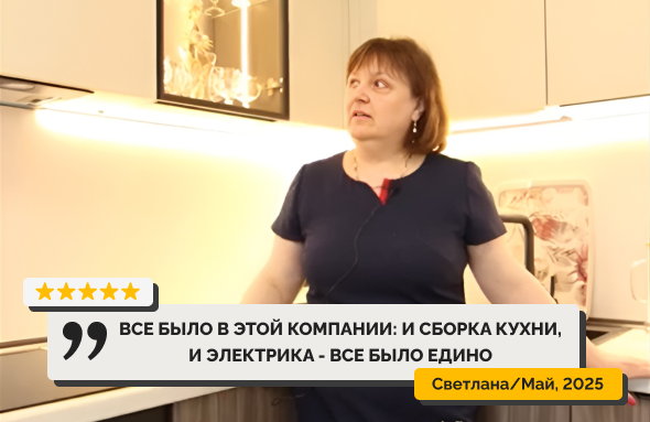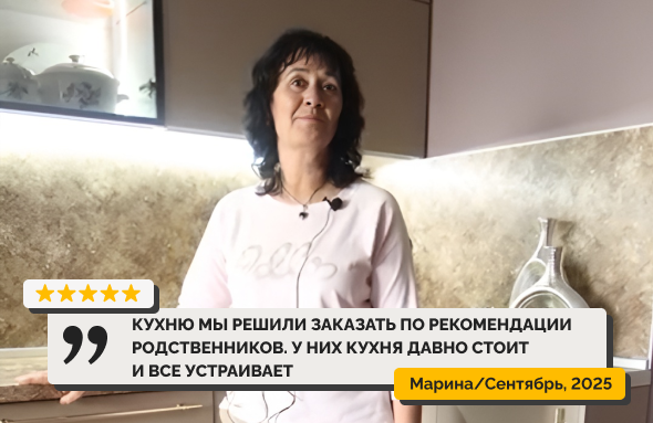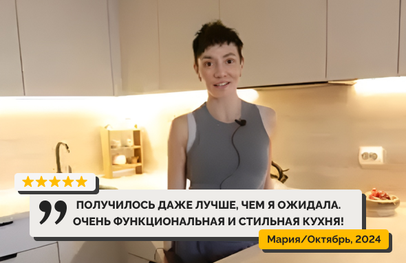 Посмотрите, к примеру, насколько гармонично сочетаются с декором фасадов тщательно подобранные нашим дизайнером столешница и стеновая панель.
