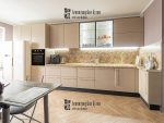 Гарнитур «Лана» — это сдержанная элегантность и глубина. Фасады цвета мокко с текстурой сланца создают благородную матовую поверхность, напоминающую о дорогом камне. Белый корпус мягко подсвечивает тёплый оттенок, добавляя пространству лёгкости и простора.