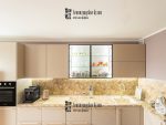 Столешница и фартук «Мадрид» с выразительным рисунком добавляют средиземноморский акцент, контрастируя со строгостью фасадов. Алюминиевый плинтус и графитовые стёкла вносят современные ноты, завершая образ. Идеально для тех, кто ценит спокойную роскошь, натуральные текстуры и лаконичность.
