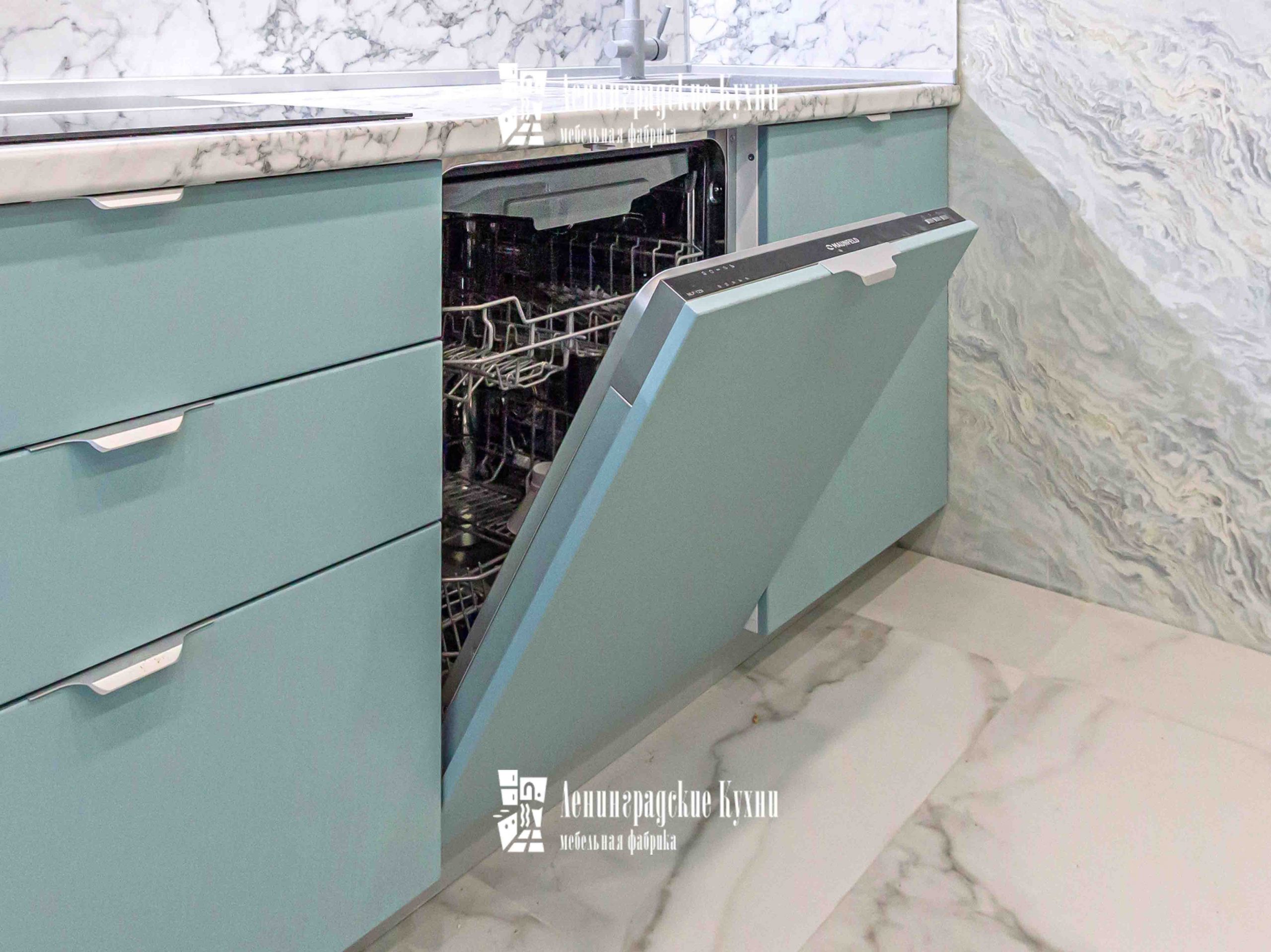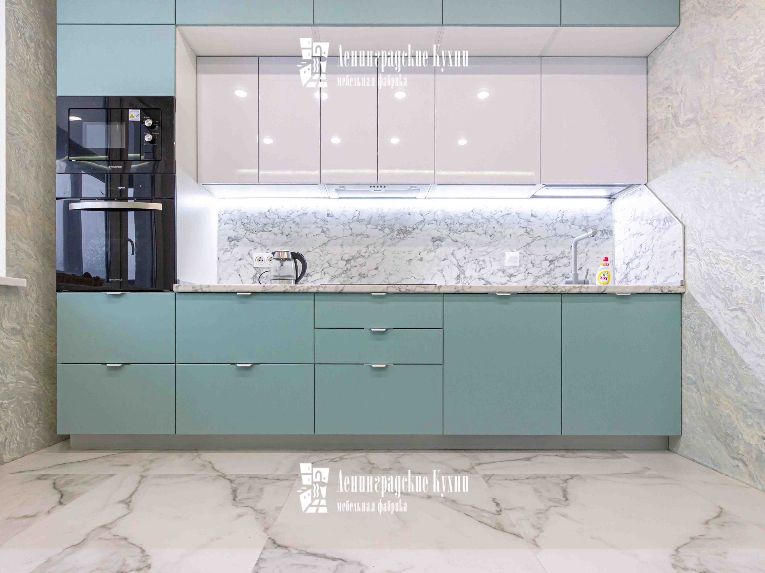 Представляем вашему вниманию изысканную и неповторимую кухню “Мирослава” — настоящий шедевр мебельного искусства! Эта трехуровневая прямая кухня выполнена в сочетании белых глянцевых и голубых матовых фасадов, придавая ей нежность и легкость.
