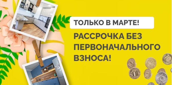 Оформите в марте договор с нашей фабрикой на изготовление кухонного гарнитура и получите рассрочку на его оплату без первоначального взноса!